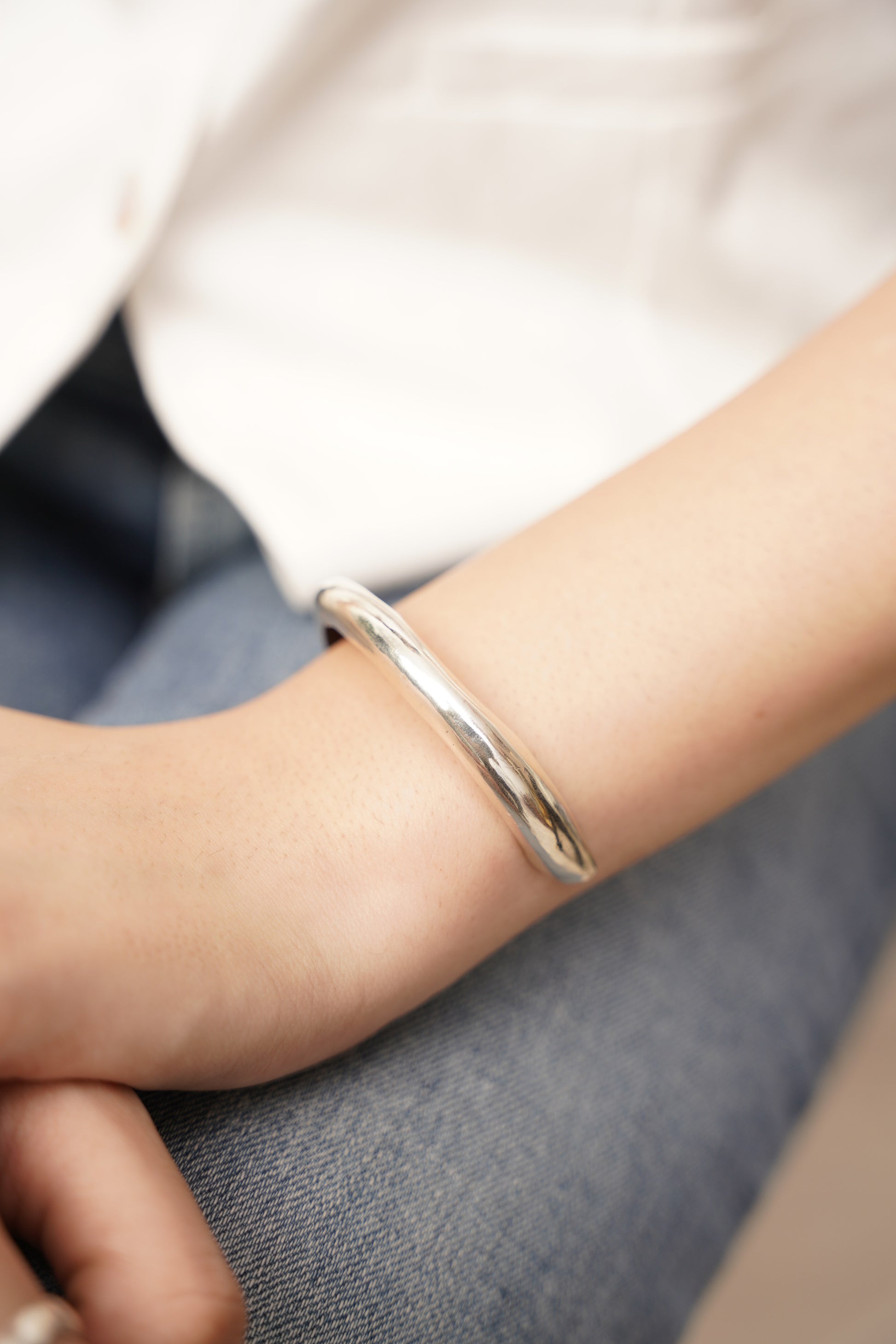 Adjustable Silver Hollow Bangle