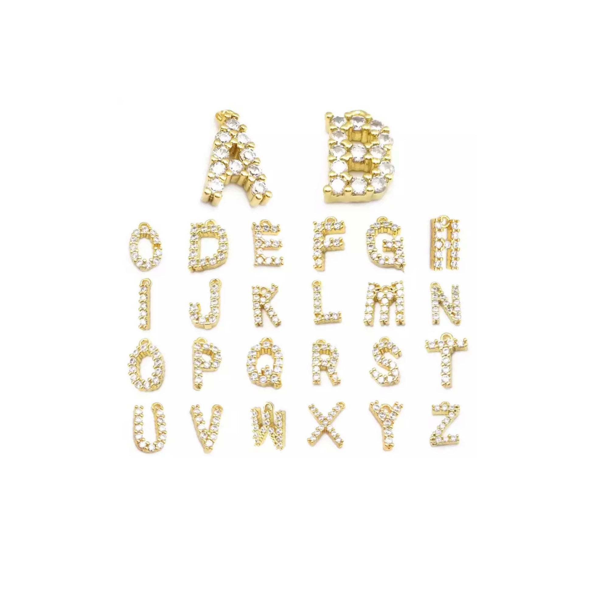 Solitaire Zircon paved waterproof gold electro-plated initial charms in a chain of your choice