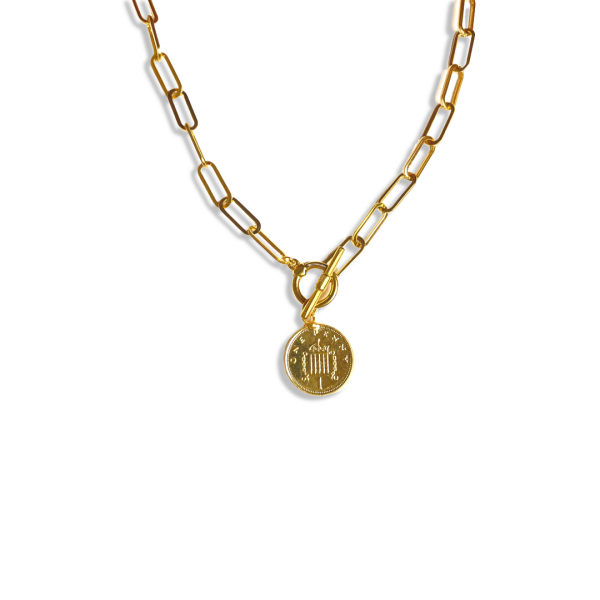 4mm Paperclip chain with t-bar lock and Elizabethan pendant